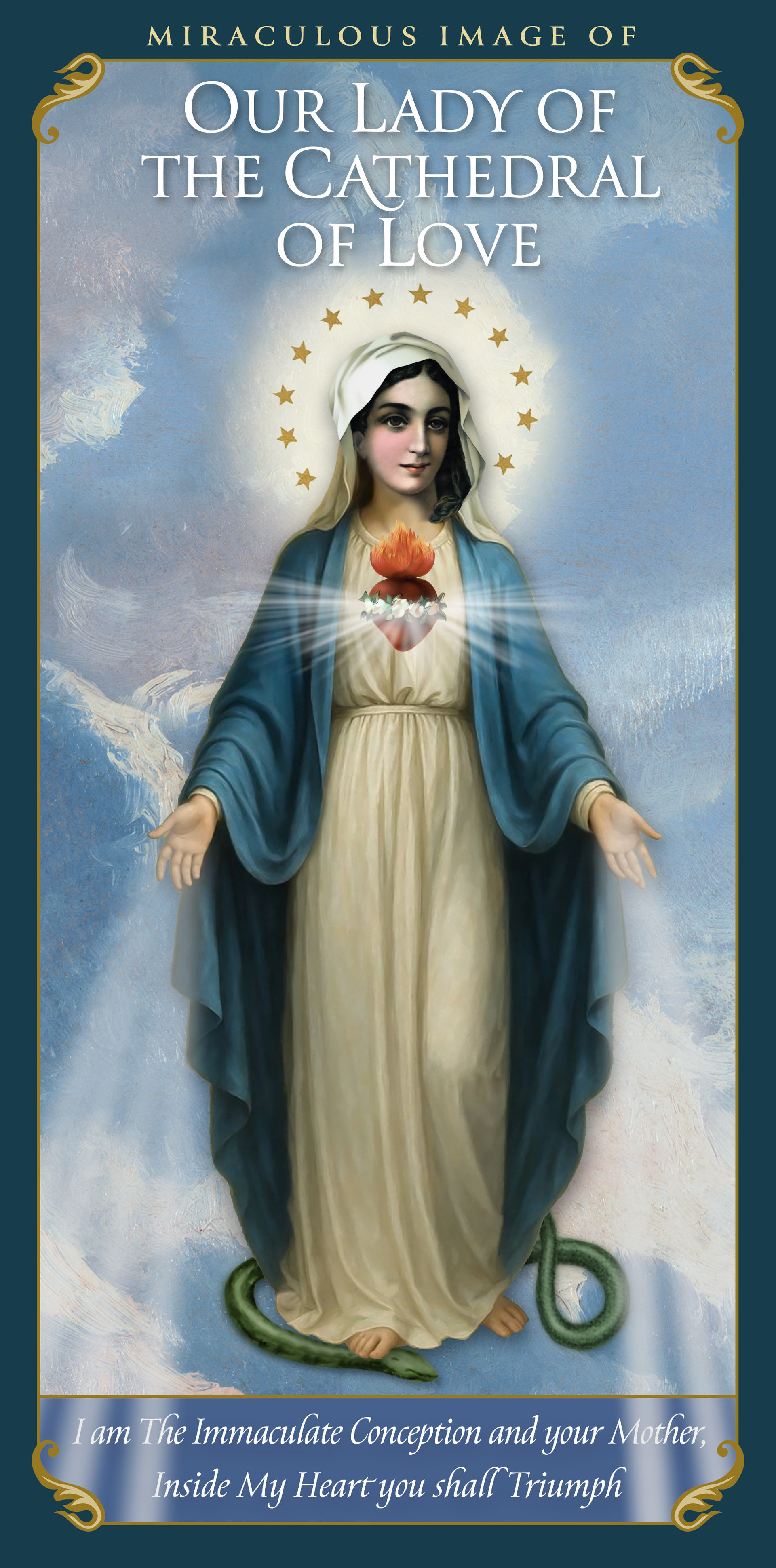 We live during a time that is unlike every other time in human history. And the tendency of the current generation is to put itself above every other generation that preceded it. This is the cause of how the Vatican-led Catholic Church has come under the power of the evil one, who has engineered a scheme that will block men and women from their Salvation. This is why the Holy Trinity has intervened by sending Our Lady of the Cathedral of Love. She is the Immaculate Heart of Mary who is destined to triumph in the end; and She is at the same time the Immaculate Conception who is the Unconquerable Virgin who crushes the head of the snake (Gen 3:15). Our Lady of the Cathedral of Love now appears standing on the head of the snake while She calls out to all of Her children to come and take possession of Her Heart. Her heart is the last remaining stronghold that cannot be conquered. And, inside her heart her children are being called to a Life that has been prepared for them, which includes a Beautiful Life with Her. This Life in Her Heart is a Life that is safeguarded by Our Holy Mother who is the Immaculate Conception.